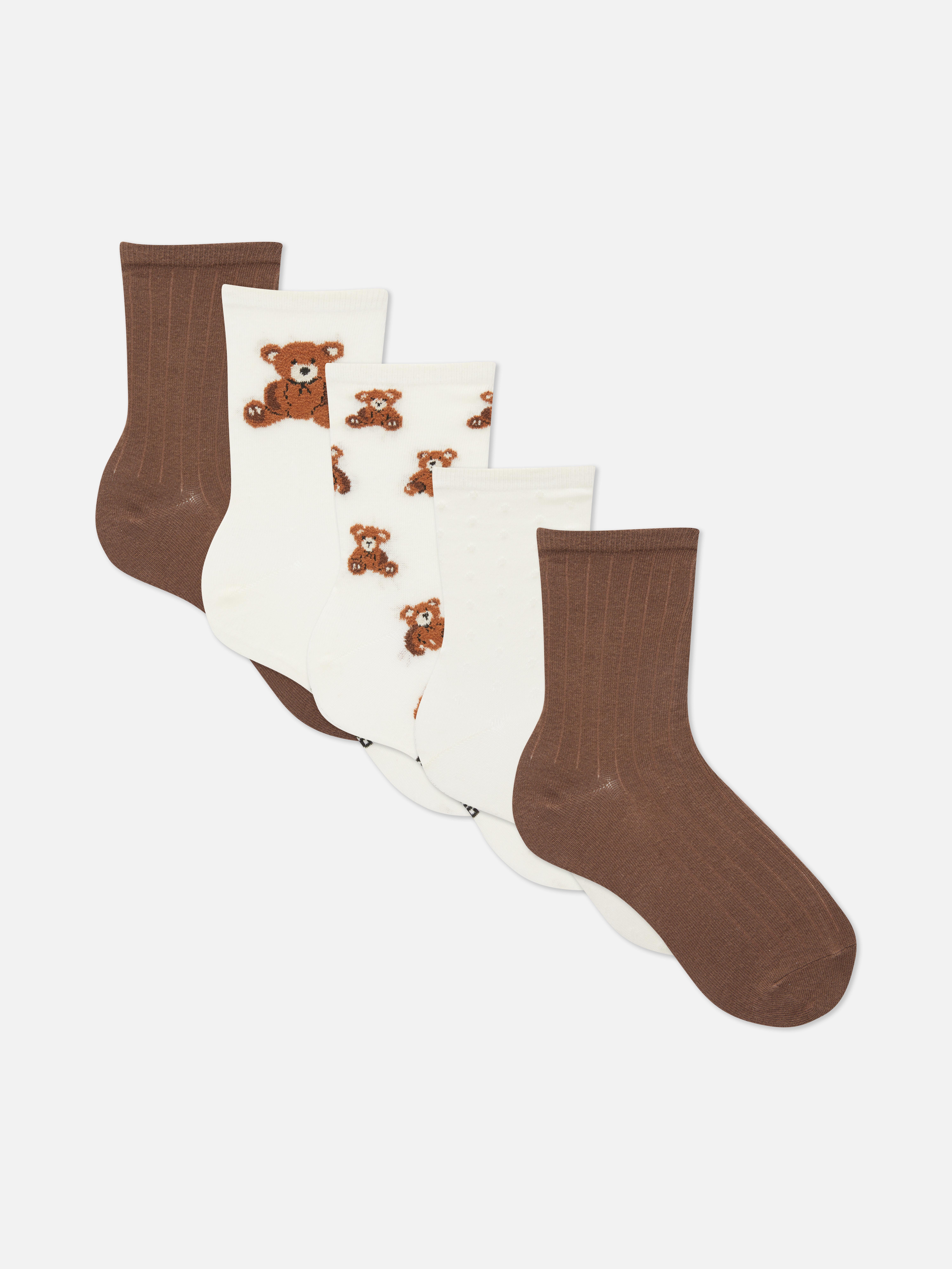 Womens Brown 5pk Teddy Bear Crew Socks Primark Very well made.