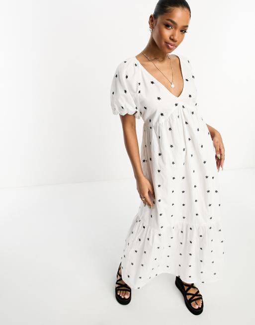 White Cotton Textured Embroidered Midaxi Dress New Look Very well made.