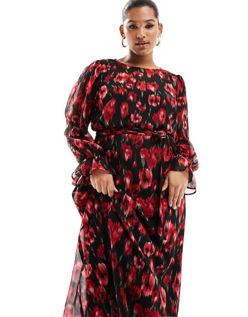 Only Curve belted maxi dress in black and red poppy floral Very well made.