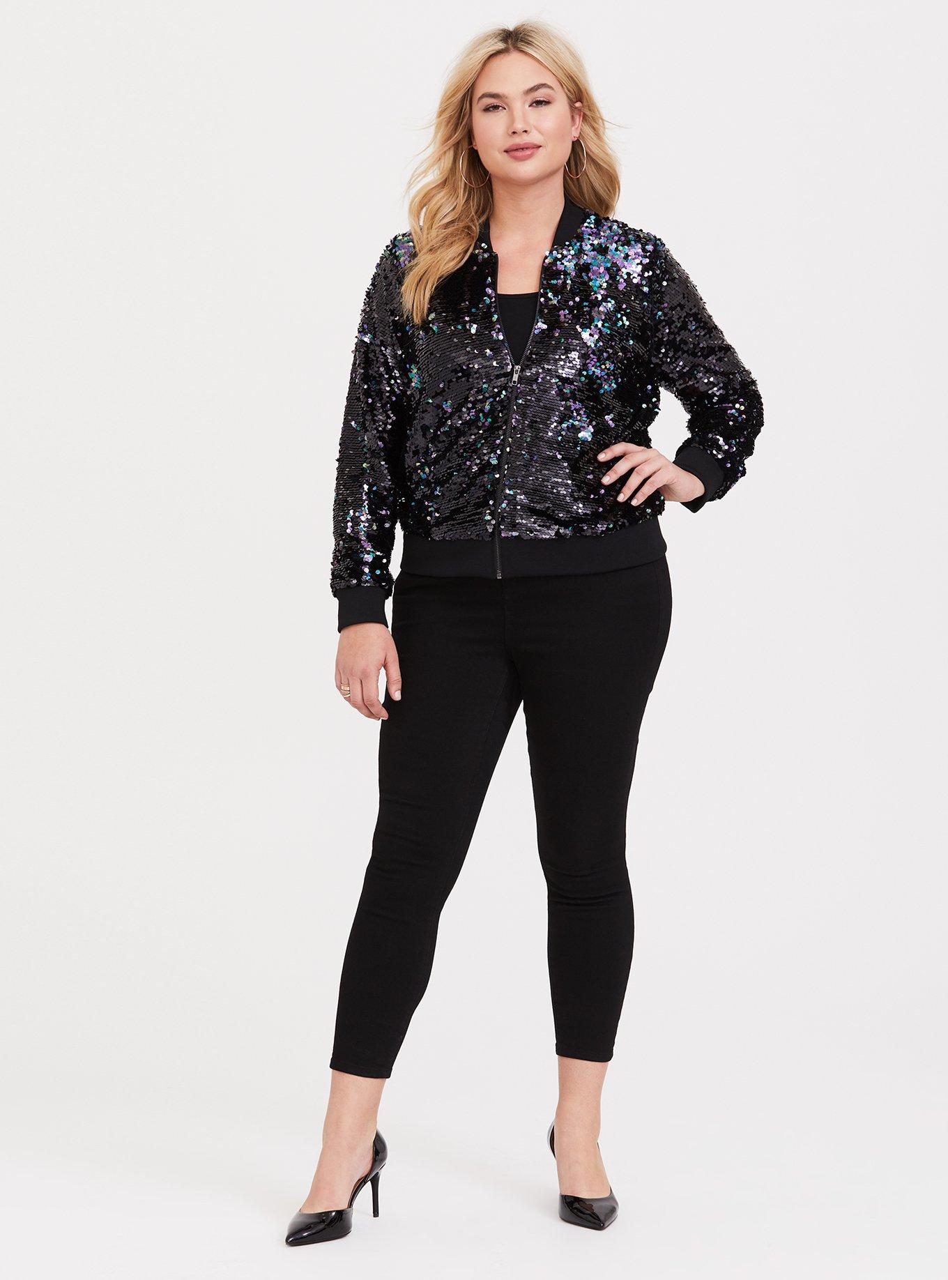 Plus Size Black Iridescent Sequin Bomber Jacket Torrid Very well made.