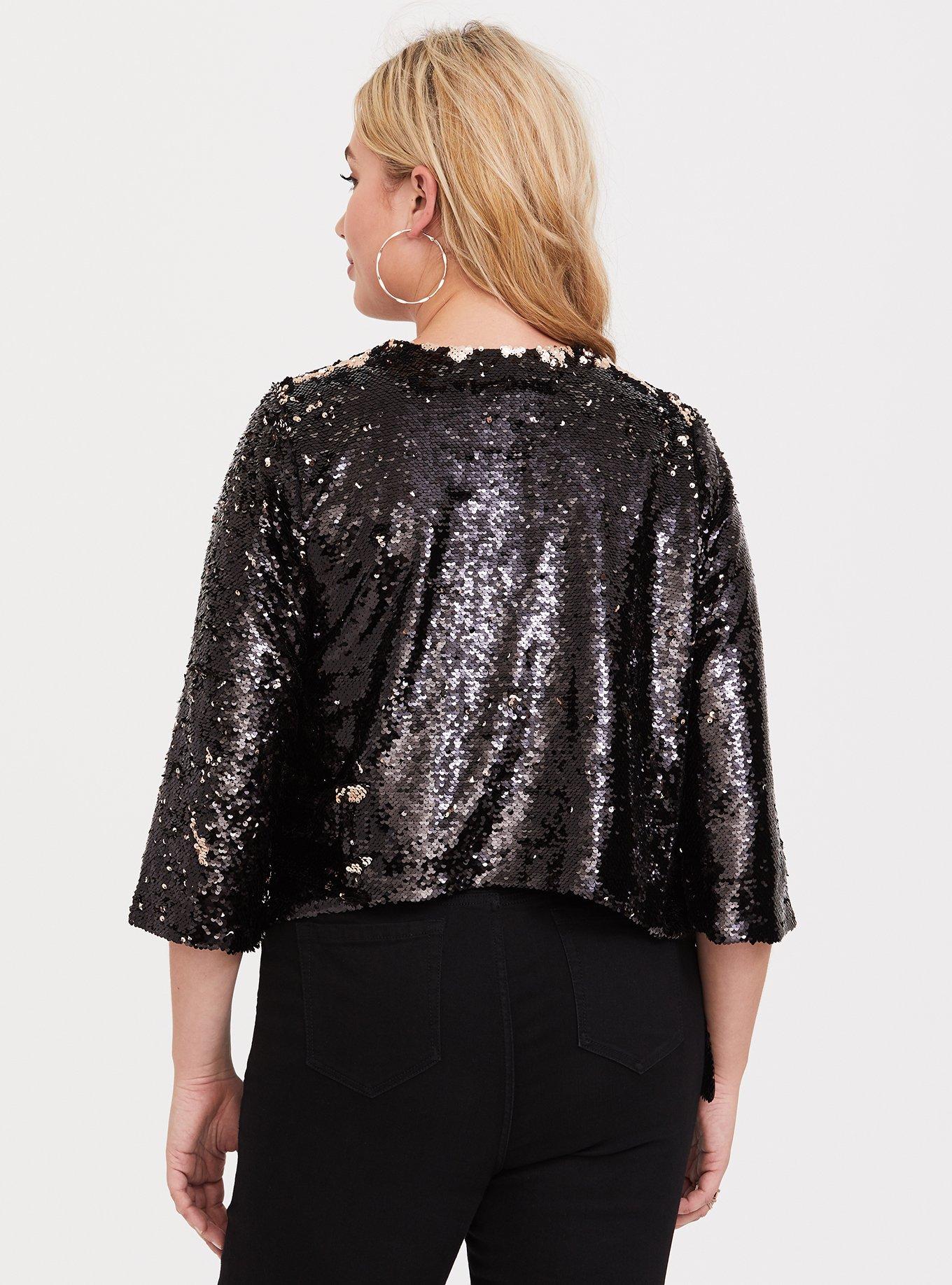 Plus Size Black Two Tone Sequin Drape Jacket Torrid Very well made.