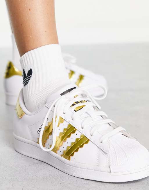 adidas Superstar trainers in white with gold stripes Very well made.