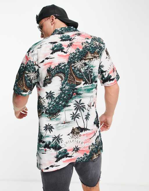 Tommy Hilfiger short sleeve hawaiian print revere collar shirt in sunset peach white Very well made.