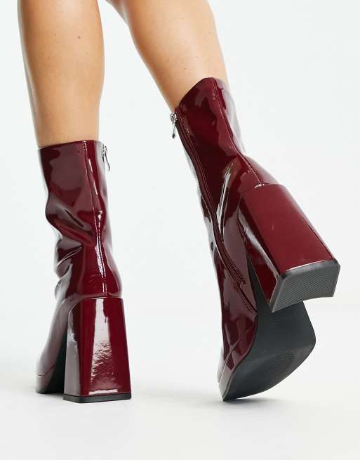 RAID Vista heeled sock boots in dark red vinyl ASOS Very well made.