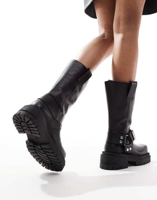 Stradivarius mid calf chunky biker boot in black Very well made.