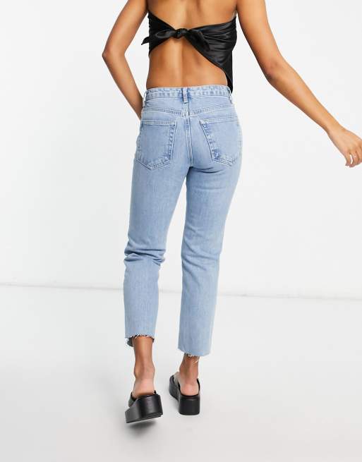 Topshop mid rise straight jeans with raw hem in bleach Very well made.