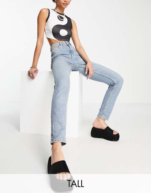 Topshop Tall comfort stretch Mom jeans in bleach Very well made.