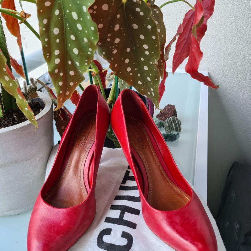 Scarpin Vermelho Nobuck Verniz Salto Alto S21811 Schutz Very well made.