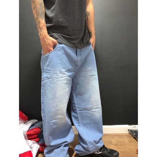 Men Wide Leg Denim Pants Hip Hop light blue Skateboarder plus size Very well made.