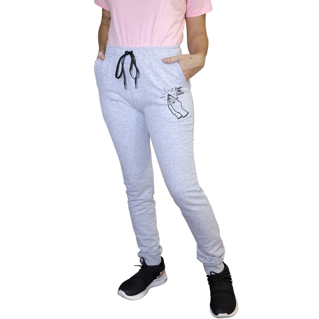CAL A MOLETOM 100 ALGOD O ROUPA FEMININA MODELO JOGGER CINZA ESTAMPA DEUS ME DIBRE BOLSO 063 Very well made.