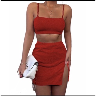 Conjunto Brilho Cropped Reto Alcinha e Saia Curta Fenda Gringa Very well made.