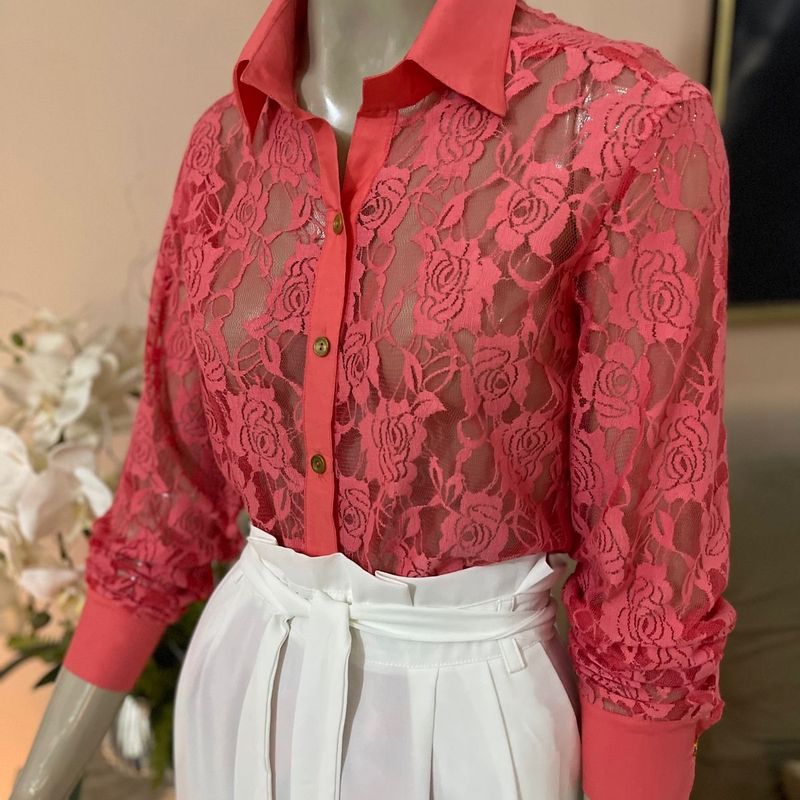 Camisa de renda feminina primavera ver o casual bot o de moda Very well made.