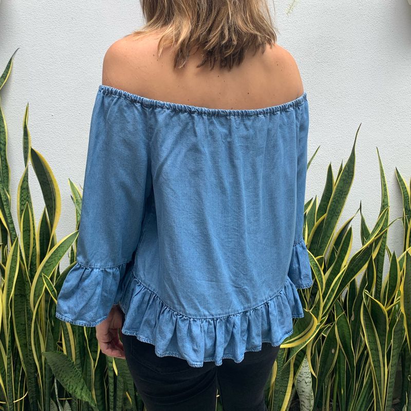 Blusa Jeans Ciganinha Babado Escura Feminina Anticorpus Very well made.