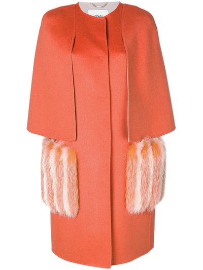 Felted Wool Cape Coat W Fox Fur Pockets In Arancio Very well made.