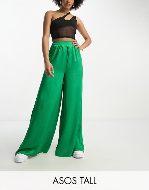 ASOS DESIGN Tall satin beach palazzo trouser in green Very well made.
