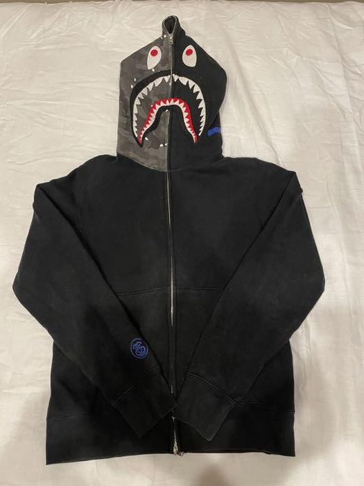 Bape Bape X Stussy Half Camo Shark Hoodie Grailed Very well made.