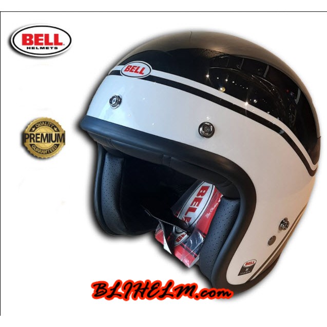 Jual HELM BELL CUSTOM 500 STREAK GLOSS BLACK WHITE OPEN FACE Very well made.