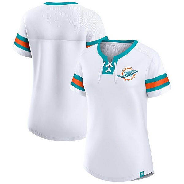 Women s Fanatics Branded White Miami Dolphins Sunday Best Lace Up T Shirt Very well made.