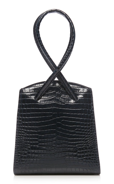 Little Liffner Twisted Wristlet Croc Embossed Leather Bag In Navy Very well made.