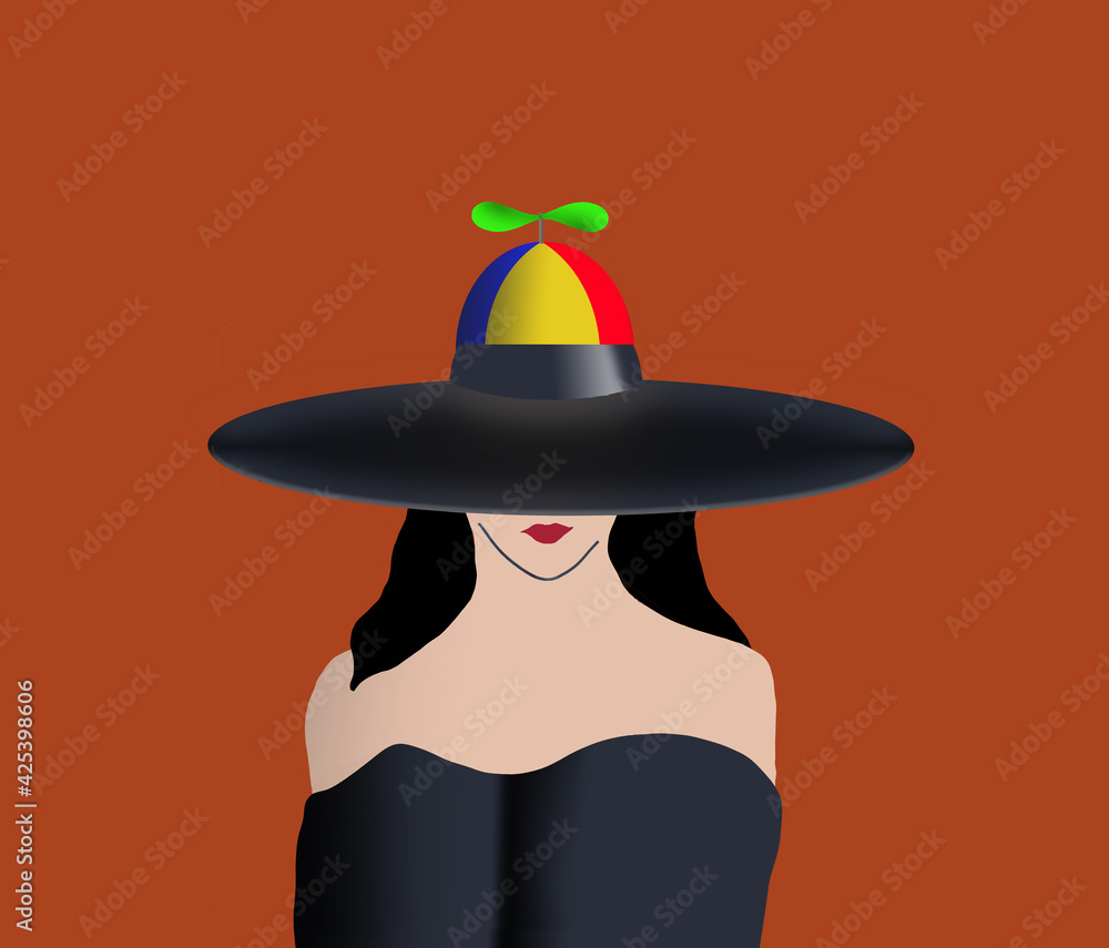 A woman a fashion model wears a humorous beanie copter Very well made.
